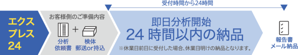 弊社受付完了後から、24時間以内に分析結果を納品いたします。(エクスプレス24プラン)